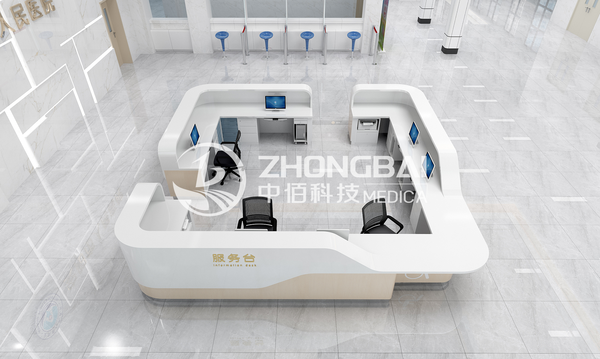 親切優(yōu)雅是設(shè)計服務(wù)臺的宗旨,力求其與環(huán)境相融合,讓醫(yī)務(wù)工作者及周邊的人群感到踏實溫暖;設(shè)計新穎大方、布局合理使用。