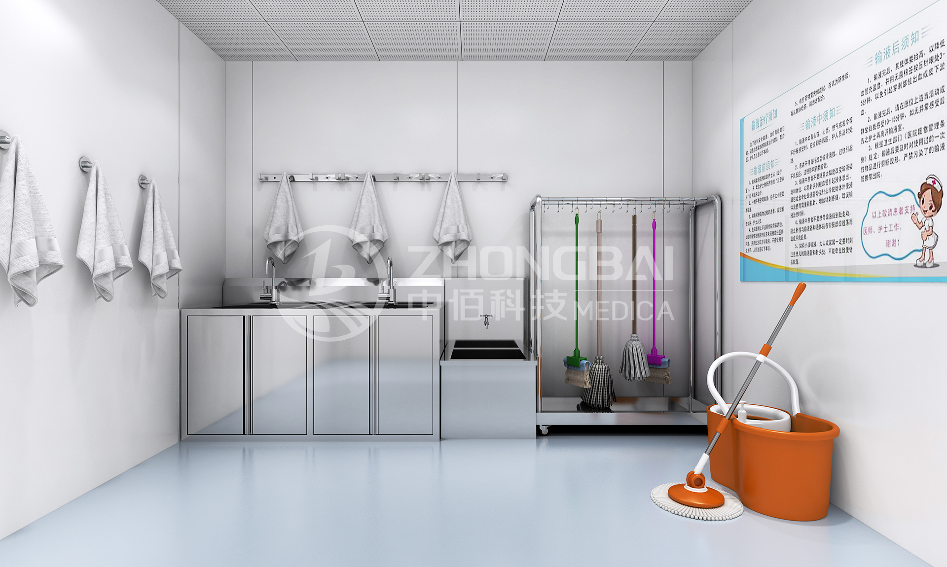 處置室一般在治療室近處,主要為醫(yī)護(hù)人員實施皮膚準(zhǔn)備及清潔灌腸等操作,臨時存放治療產(chǎn)生的醫(yī)療廢物及需要浸泡消費(fèi)的醫(yī)療物品的專用工作室。