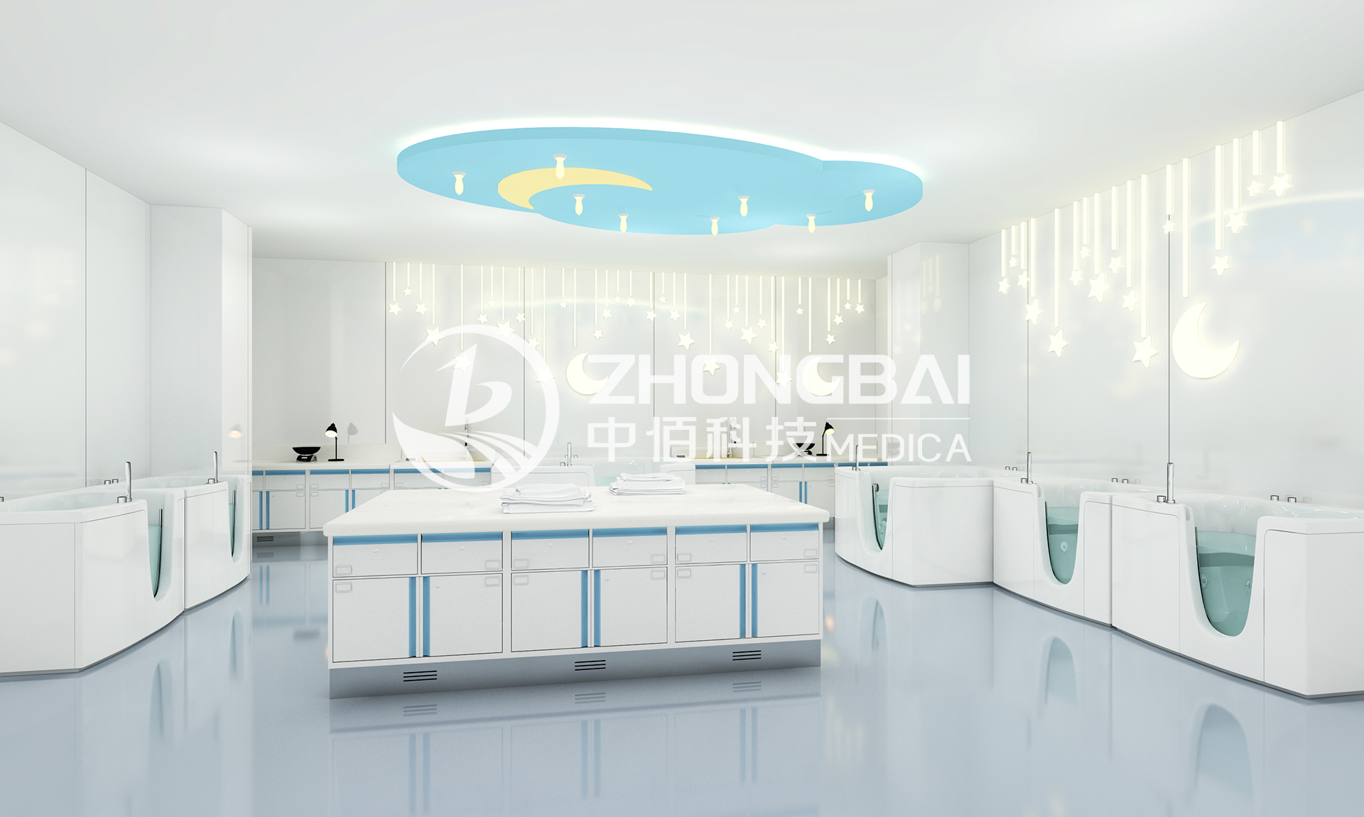 洗嬰室需要結(jié)合新生兒護(hù)理工作的模式和環(huán)境,進(jìn)行整體設(shè)計,注重安全、預(yù)防感染,營造符合嬰幼兒特征的活潑可愛、安全溫馨的場景氛圍。
